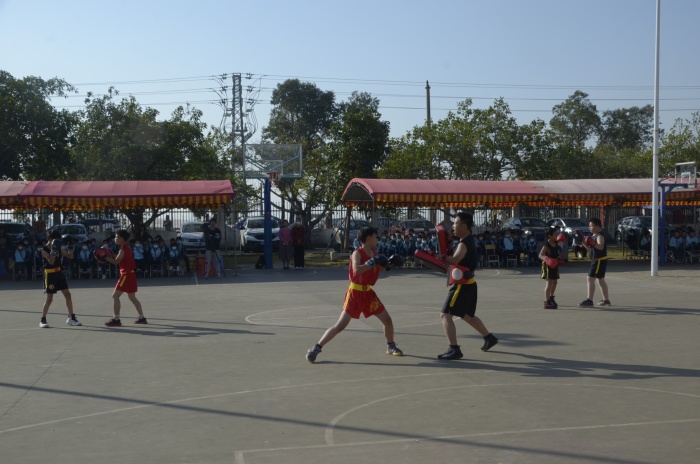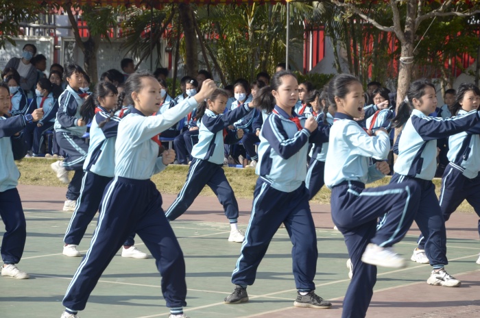 12月10日,風(fēng)和日麗,晴空萬里。同學(xué)們早早來到學(xué)校,摩拳擦掌,興奮異常,因為期待已久的功夫團體賽就要開始了。隨著響亮的國歌奏唱,陳啟武校長宣布群聯(lián)小學(xué)2021年“中國功夫”團體比賽正式開幕。學(xué)校散打隊、武術(shù)隊率先登場亮相,為師生們展現(xiàn)功夫的魅力;舞蹈隊也為活動添彩,《獅熹樂》表演融入了舞蹈和舞獅,讓師生們目不暇接、驚嘆不已。隨著助興節(jié)目的結(jié)束,“中國功夫”團體比賽正式拉開序幕。