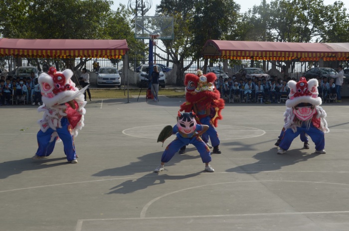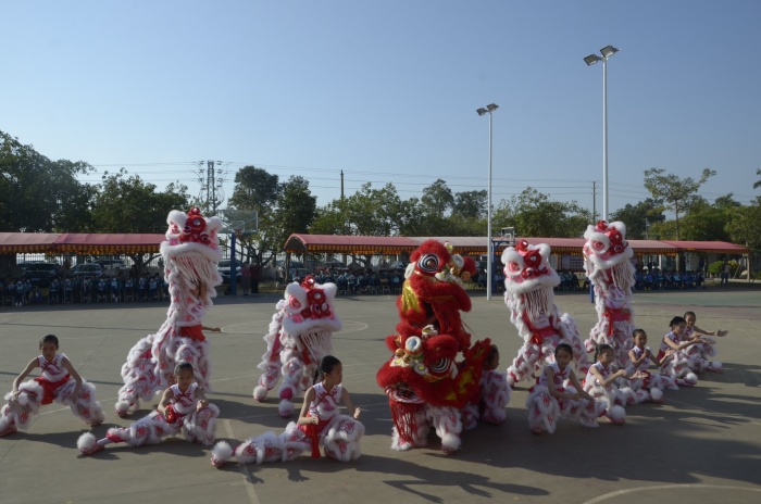 本次團體比賽分先進團體比賽、班級精英比賽和年度小獅王比賽。其中,低年級組比賽形式為中華武術(shù),中年級組比賽形式為傳統(tǒng)舞獅,高年級組比賽形式為葉問詠春;另外還有年度“小獅王”比賽。別看孩子們年紀小,打起功夫來一板一眼,動作干練,神氣十足。特別是低年級的小朋友們,初生牛犢不怕虎,眼神犀利,動作有力;小小年紀頗有大師的風(fēng)范,引起了全場掌聲雷動。年度“小獅王”比賽,“小獅子”們威風(fēng)凜凜、活靈活現(xiàn)??粗活^頭可愛而威武的“小獅王”,同學(xué)們歡呼聲一浪接一浪,掌聲與笑聲不斷。而互動環(huán)節(jié),“小獅王”走進各班“大本營”,孩子們歡呼著去觸摸“小獅王”,高喊著“我也要當(dāng)小獅王”“我摸到了小獅王”“小獅王,來這里!”……一片歡聲笑語,把活動推向高潮。