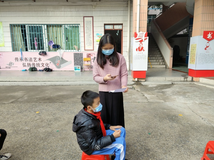 本次演練海洲第二小學(xué)根據(jù)場(chǎng)地實(shí)際開(kāi)展。檢測(cè)演練劃分為等候區(qū)、測(cè)溫區(qū)、信息登記區(qū)、標(biāo)本采樣區(qū)。演練過(guò)程中,班主任組織學(xué)生保持一米隊(duì)伍先測(cè)溫等候檢測(cè),在登記區(qū),工作人員對(duì)受檢師生進(jìn)行身份信息核對(duì)。核對(duì)無(wú)誤后再去采樣區(qū)進(jìn)行采樣。在采樣區(qū),醫(yī)護(hù)人員采用10人一組方式進(jìn)行采樣。采樣結(jié)束后,班主任帶領(lǐng)下快速離開(kāi)檢測(cè)點(diǎn)。采樣結(jié)束后,由趙云老師對(duì)整個(gè)場(chǎng)地進(jìn)行消毒。