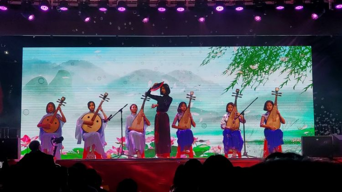 整個晚會分四個篇章。序幕:歌唱美好的生活,歌唱美好的未來,在初一合唱團帶來《最好的未來》歌曲后,東鳳中學劉喜全校長發(fā)表元旦致辭,送上新年的寄語與祝福。2021年校園文化藝術節(jié)文藝晚會正式拉開序幕。啟航篇:青春的旋律是舞動的音符,年輕的節(jié)拍詮釋澎湃的活力!東鳳中學舞蹈隊帶來舞蹈《歡聚一堂》以及熱情四射的爵士舞《幻想童話》。征程篇:征程萬里風正勁,重任千鈞再奮蹄。文化傳承,歌曲聯(lián)唱:粵劇《紅棉贊》《龍的傳人》《向快樂出發(fā)》。奮進篇:奮進東中,進步成長,圓夢東中,青春飛揚!由學生們帶來的小品表演《成長的煩惱》,換位理解學生們。追夢篇:每個東中人都敢于有夢、勇于追夢、勤于圓夢。學生們帶來的民樂合奏《幸福渠水到俺村》,魂牽夢繞的古箏彈奏出優(yōu)美的音韻,余音繞梁。