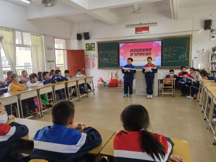 2021年12月31日下午,以班級為單位開展的“辭舊迎新表感恩 放飛夢想樂成長”主題班會活動正開展得如火如荼。各班正副班主任充分發(fā)揮聰明才智,圍繞主題,組織了豐富多彩的辭舊迎新主題活動?;蛑v述元旦的來歷,或暢談新年的祝愿,或組織驚喜禮物交換會,或用畫筆畫下新年美好祝福,或由班級學(xué)生自己設(shè)計、組織新年聯(lián)歡會,學(xué)生熱情高漲,積極參與,充分發(fā)揮自己的特長,武術(shù)、朗誦、小品、游戲等節(jié)目一一亮相,現(xiàn)場精彩紛呈,笑聲連連。