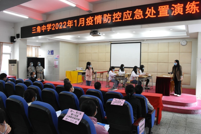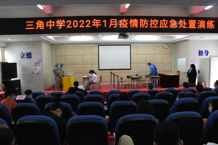 為扎實(shí)做好校園疫情防控工作,確保期末考試各項(xiàng)工作的順利開展,1月7日下午,三角中學(xué)舉行2022年疫情防控應(yīng)急處置演練。學(xué)校行政領(lǐng)導(dǎo)、學(xué)??倓?wù)處、醫(yī)務(wù)處相關(guān)人員及全體教師代表參加了演練,三角醫(yī)院劉森副院長(zhǎng)蒞臨現(xiàn)場(chǎng)作專業(yè)指導(dǎo)。