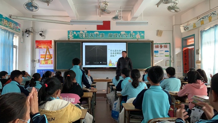 盧主任首先拋出問題“世界上什么東西最寶貴?”來引出話題“生命”,從孩子們學(xué)過的課文聊起,讓他們認(rèn)識(shí)生命是神奇的偉大的。從生命的起源談起,讓他們懂得要珍愛生命、敬畏生命。通過視頻分享,引導(dǎo)學(xué)生感悟生命,保護(hù)自己的生命,不拿生命賭氣。盧主任還分享另外一個(gè)學(xué)校制作的視頻告訴孩子們:生活中我們會(huì)遇到各種各樣的困難,我們不僅要面對(duì)并解決還要珍愛生命,讓生命精彩地綻放!授課中,一幅幅圖片,喚醒了學(xué)生們對(duì)生命的理解;一次次互動(dòng),表達(dá)了學(xué)生們熱愛生命的心聲;一個(gè)個(gè)事例,激發(fā)了學(xué)生們直面挫折的決心。六(1)班學(xué)生認(rèn)真聆聽,各抒己見,受益匪淺。