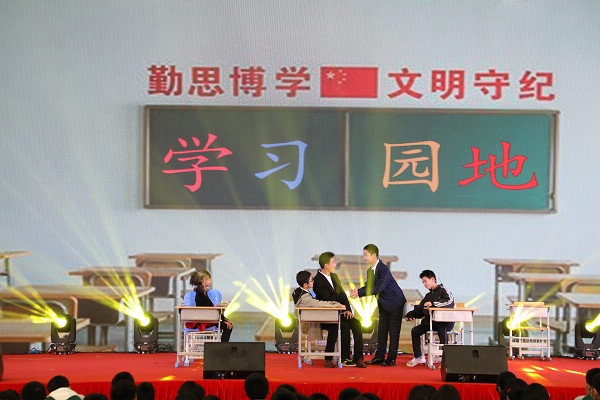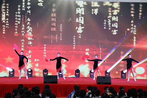 演出結(jié)束后,評(píng)出一等獎(jiǎng)十名,他們分別是一(1)班舞蹈《天天向上》、二(5)班舞蹈《阿拉伯之夜》、三(2)班舞蹈《媽媽寶貝》、四(5)班合唱《強(qiáng)國(guó)少年》、五(5)班舞蹈《少年志》、六(2)班舞蹈《大魚》,七(1)班小品《向領(lǐng)導(dǎo)匯報(bào)》、七(2)班小品《占位子》、九(2)班舞蹈《青花瓷》、九(4)班小品《走過(guò)場(chǎng)》,學(xué)校領(lǐng)導(dǎo)分別為獲獎(jiǎng)班級(jí)頒發(fā)獎(jiǎng)狀。