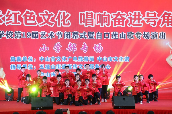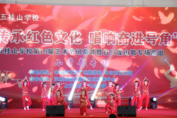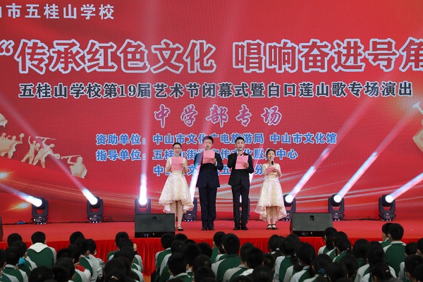 2021年12月31日一天,五桂山學(xué)校體育館內(nèi)歌舞飛揚(yáng),掌聲如潮,原來(lái)是五桂山學(xué)校在這里舉辦第19屆藝術(shù)節(jié)閉幕式暨白口蓮山歌專場(chǎng)演出。上午為小學(xué)兩個(gè)專場(chǎng),下午為中學(xué)專場(chǎng)。