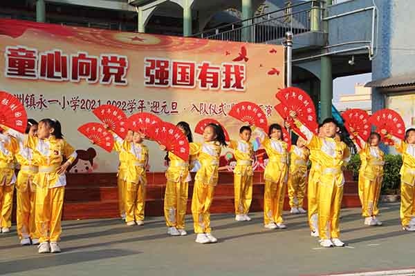 為了教育引導(dǎo)少年兒童聽黨話、跟黨走,傳承紅色基因;為豐富校園文化生活,充分展示學(xué)校藝術(shù)教育成果,提供學(xué)生表演的舞臺,坦洲鎮(zhèn)永一小學(xué)于2021年12月31日下午,舉行了“童心向黨,強(qiáng)國有我”新隊(duì)員入隊(duì)儀式暨迎元旦文藝匯演。
