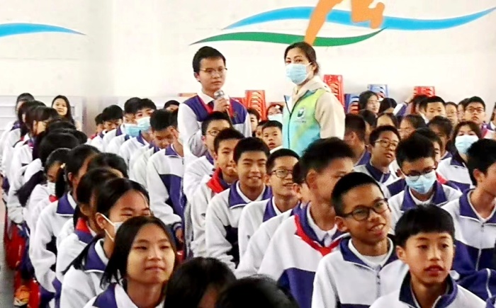3月28日下午,為提高青少年對毒品的認知能力和抵御能力,營造良好的禁毒氛圍,永寧中學聯合永寧社區(qū)禁毒辦在學校體育館開展“無毒青春,有你有我”為主題的禁毒教育活動。?永寧派出所警官張祥源、小欖鎮(zhèn)禁毒社工胡志剛、永寧社區(qū)禁毒專干梁熀培、羅春妹、方慧瀅、永寧中學初一年級全體學生和班主任共530多人參加了本次活動。活動由永寧中學德育處主任戴放良主持。