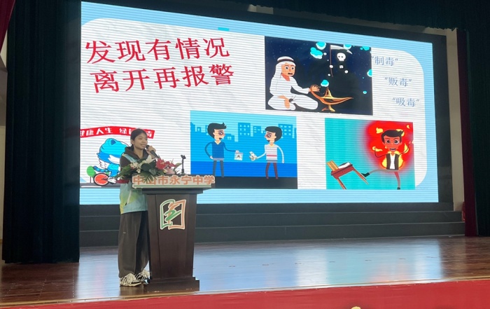 永寧社區(qū)禁毒專干方慧瀅針對青少年辨別毒品能力弱、對毒品的危害及禁毒知識認識不足等問題作《無毒青春,有你有我》主題宣講,通過認識粵虎、毒品你知道多少、毒品有多可怕、我該如何做等四個部分,結合初一學生年齡認知實際和廣東禁毒案例,從毒品的辨別、毒品的危害、如何防御等方面進行講解,以此來提高學生們對毒品的自我防護意識和辨識毒品的能力。