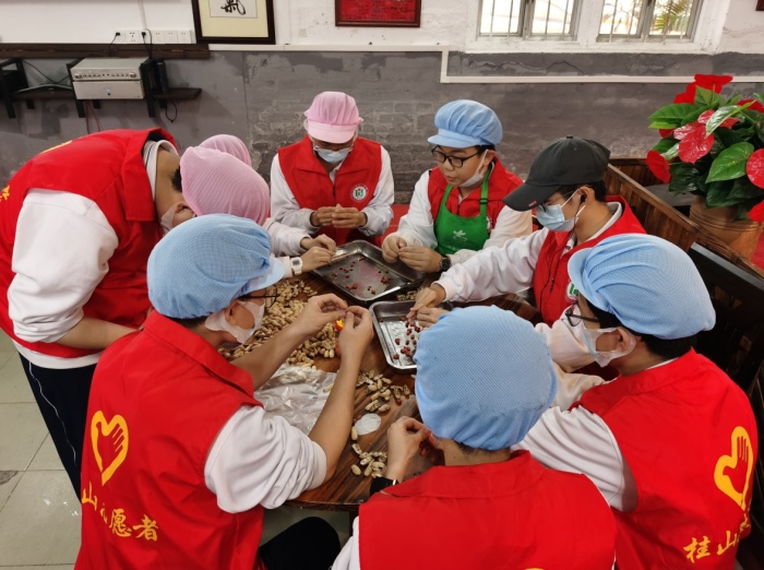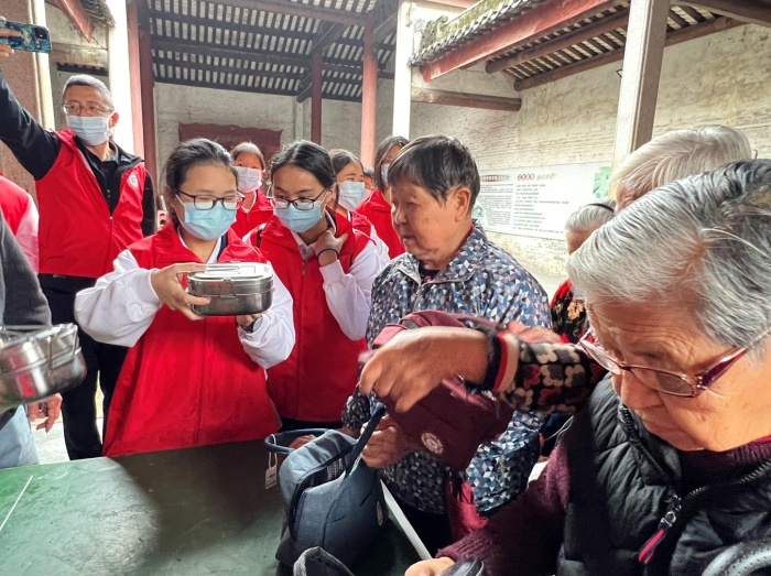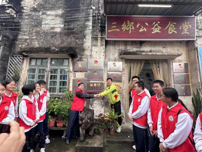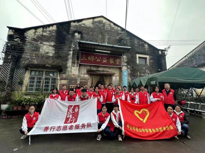 為傳承敬老愛老、服務(wù)社會的美德,2023年4月1日早晨,桂山中學(xué)高一年級學(xué)生、家長身穿志愿服,冒著朦朧細(xì)雨,早早來到了三鄉(xiāng)公益食堂開展“服務(wù)老人,幫助廚師”的熱心公益活動。當(dāng)天,三鄉(xiāng)公益食堂還舉行了桂山中學(xué)志愿服務(wù)實踐基地授牌儀式。