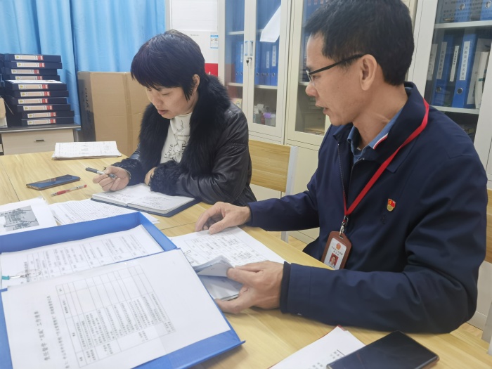 梁炳華督學首先通過查閱資料、實地查看,結(jié)合《“六項管理”專項督查實地記錄表》逐項對學?!傲椆芾怼惫ぷ髻Y料進行細致檢查。梁督學通過了解學校“六項管理”工作的制度建立、推進和落實情況、具體做法以及實際效果,教導處黃桂容主任對督查組提出的問題進行了逐一的回應和解答。