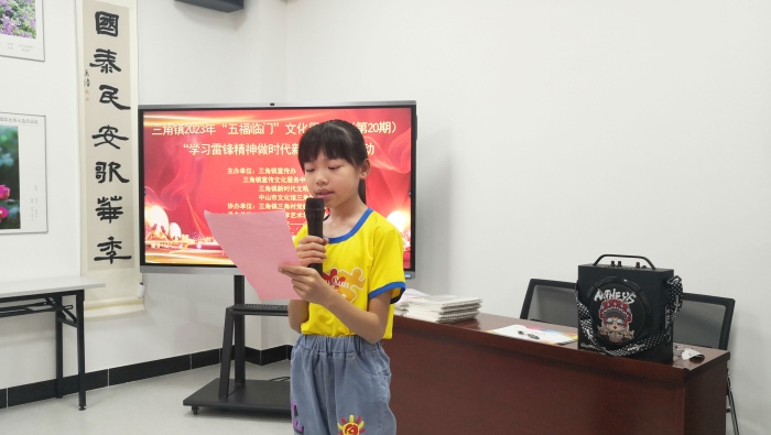 為進(jìn)一步加深社員們對(duì)雷鋒精神的理解,激勵(lì)社員們積極弘揚(yáng)踐行雷鋒精神并在新時(shí)代下賦予雷鋒精神更加豐富而深刻的內(nèi)涵,助力社員們?cè)诶卒h精神的滋養(yǎng)陪伴下更加健康茁壯地成長(zhǎng),3月18日上午,三角鎮(zhèn)三角小學(xué)海鷗文學(xué)社的部分社員在中山市文化館三角鎮(zhèn)分館參加了由三角鎮(zhèn)宣傳辦、三角鎮(zhèn)宣傳文化中心(圖書館)等單位聯(lián)合主辦的三角鎮(zhèn)2023年“五福臨門”文化周活動(dòng)(第20期)“學(xué)習(xí)雷鋒精神做時(shí)代新人”共讀活動(dòng)。