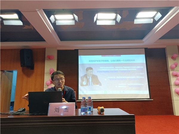 在我國(guó)的第6個(gè)“近視防控宣傳教育月”里,為共同呵護(hù)好孩子的眼睛,讓其擁有一個(gè)光明的未來(lái)。3月23日,責(zé)任督學(xué)、中山市學(xué)校健康教育百師宣講團(tuán)副團(tuán)長(zhǎng)劉杰校長(zhǎng)專程到三鄉(xiāng)鎮(zhèn)白石環(huán)小學(xué)作了《千方百計(jì)抓好學(xué)生近視防控工作》的專題講座。全校教職工參加了培訓(xùn)。