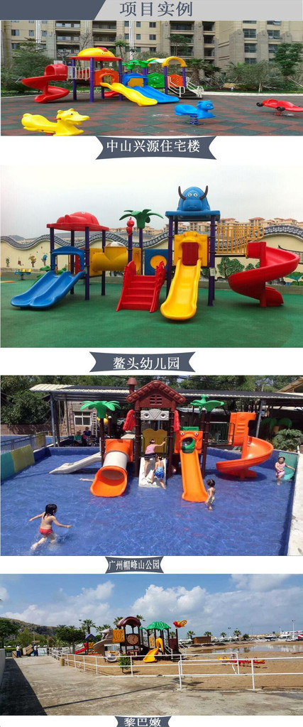 滑梯、屋頂、欄板等塑料類部件采用進(jìn)口有色塑料,進(jìn)口聚乙烯添加抗紫外線穩(wěn)定劑及靜電防止劑及抗老化劑,