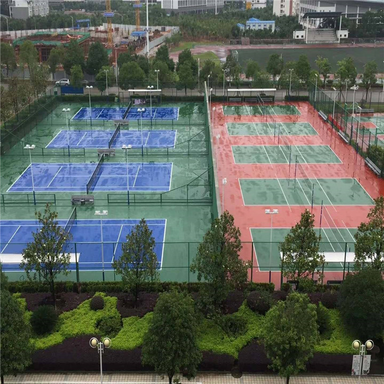??抗污性:硅PU面層堅(jiān)韌、密實(shí),不易被鞋底或其它硬物刮花,通過簡(jiǎn)易的沖洗即可長期保持球場(chǎng)光潔如新。