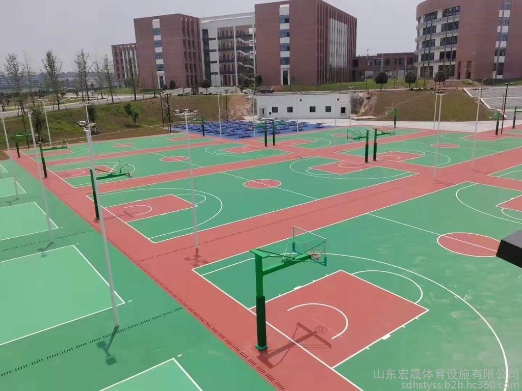 宏晟體育款式定制 硅pu球場、塑膠球場、丙烯酸籃球場、硅pu塑膠球場,防水抗滑專業(yè)施工團(tuán)隊(duì)安裝塑膠跑道工程