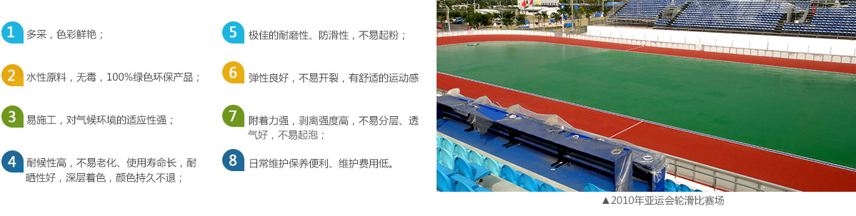 變形成的運(yùn)動(dòng)項(xiàng)目,興起于1863年在1995年的ESPN第一界極限運(yùn)會(huì)更把它推向了繁榮期,到了21世紀(jì)已成為一種時(shí)尚的休閑運(yùn)動(dòng),風(fēng)行世界各地。目前我國的輪滑場也越來越普及起來。輪滑場地是一個(gè)比較特殊的比賽場地,它要求有良好的防滑和耐磨的運(yùn)動(dòng)性能,而且又不能影響運(yùn)動(dòng)員的比賽速度,因此對(duì)所使用的運(yùn)動(dòng)涂料方面有很高的技術(shù)要求,很多運(yùn)動(dòng)涂料廠家不能夠滿足用戶的要求,輪滑場地專用抗沖擊化合物耐磨聚丙運(yùn)動(dòng)涂料系統(tǒng)就能夠很好的滿足輪滑運(yùn)動(dòng)者的要求。