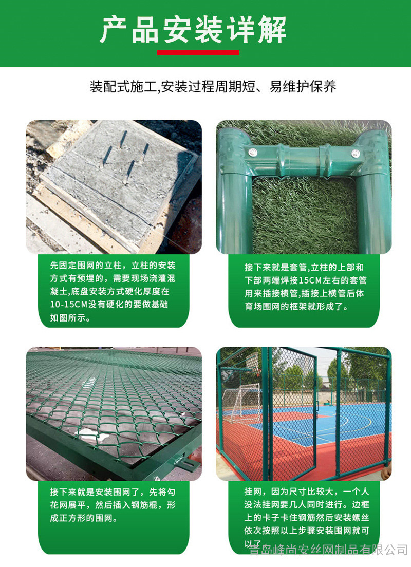 運(yùn)動(dòng)場圍網(wǎng)優(yōu)點(diǎn):具有防腐、防老化、抗曬、耐候、色彩鮮亮、網(wǎng)面平整,強(qiáng)力張緊,不易受外力撞擊變形、現(xiàn)場施工安裝、靈活性強(qiáng),可根據(jù)現(xiàn)場要求隨時(shí)調(diào)整造型和尺寸。運(yùn)動(dòng)場圍欄網(wǎng)具有產(chǎn)品色彩鮮亮、規(guī)格齊全的特點(diǎn)。