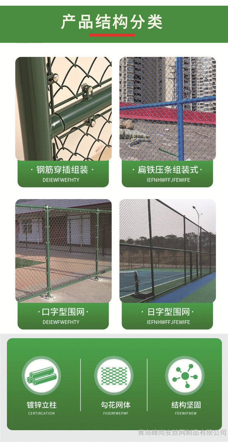 體育場圍網(wǎng):體育圍網(wǎng)可以適用于各種排球場、網(wǎng)球場、足球場等場所,可以滿足學(xué)校、、企事業(yè)單位健身設(shè)施的需求,其外觀整齊,抗沖擊力強(qiáng)且有彈性,小區(qū)樓群中的運(yùn)動(dòng)場更需要隔離。