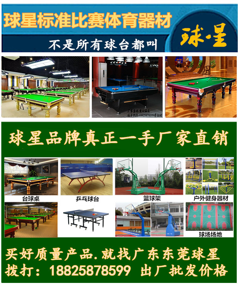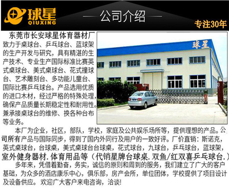 東莞市長安球星體育器材廠集三十多年管理、制造經(jīng)驗,專業(yè)制造桌球臺、乒乓球臺、籃球架、桌上足球.公園.小區(qū)健身器材等./等體育用品。秉著質量至上,信譽好的原則,所做產品深受客戶好評。桌球臺、乒乓球臺、籃球架.桌上足球.公園小區(qū)健身器材五個系列產品遠銷歐洲,南、北美洲,澳大利亞及部分阿拉伯**。