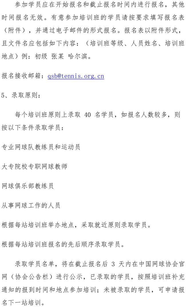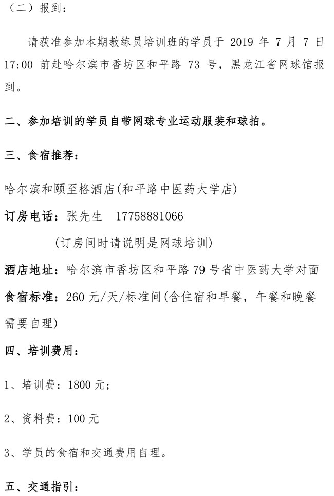 中國網(wǎng)球協(xié)會2019年初級教練員培訓班(哈爾濱站)補充通知