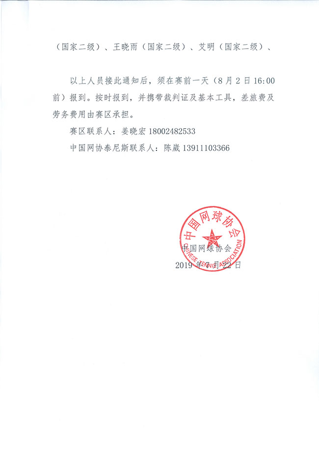 關(guān)于選派2019年中國(guó)業(yè)余網(wǎng)球公開(kāi)賽阜新白金賽技術(shù)官員的通知