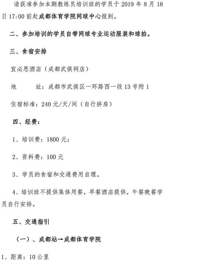 中國網(wǎng)球協(xié)會(huì)2019年初級(jí)教練員培訓(xùn)班(成都站)補(bǔ)充通知