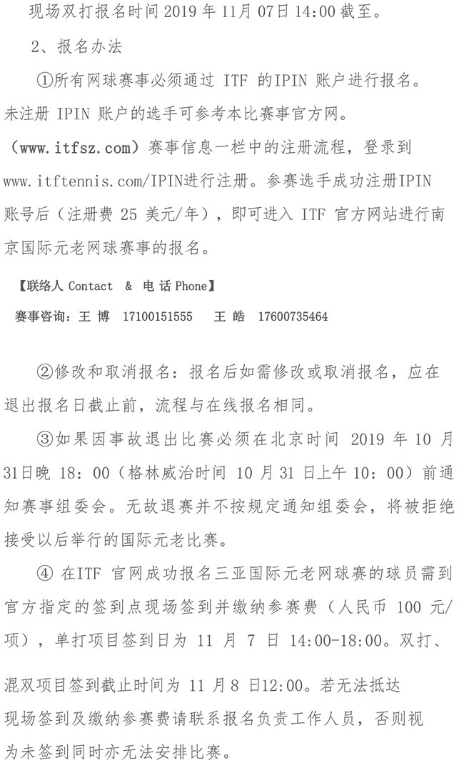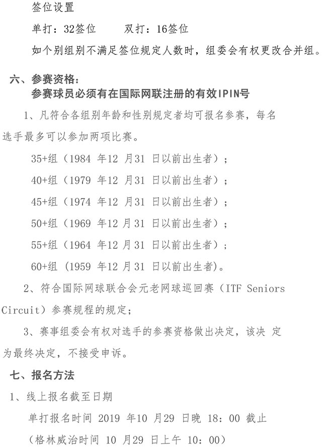 2019ITF三亞國(guó)際元老巡回賽競(jìng)賽規(guī)程