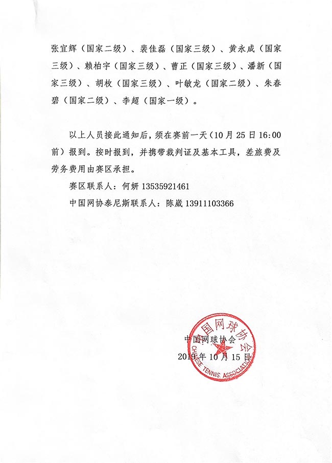 關于選派2019年中國業(yè)余網(wǎng)球公開賽深圳皇冠賽技術官員的通知