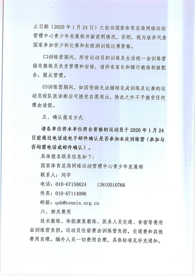 2020年國(guó)家青年網(wǎng)球隊(duì)訓(xùn)練營(yíng)補(bǔ)充通知
