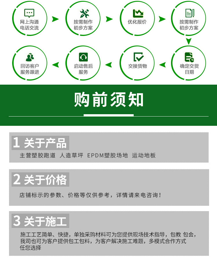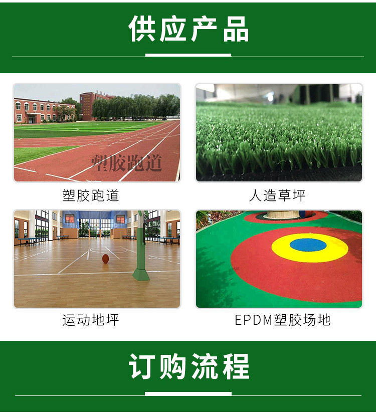 ??我公司擁有先進(jìn)的工藝技術(shù)和機(jī)械加工設(shè)備。專業(yè)生產(chǎn)各種規(guī)格的人工草坪、EPDM彩色橡膠顆粒、膠水等。廣泛應(yīng)用于塑膠跑道、籃球場(chǎng)、足球場(chǎng)、網(wǎng)球場(chǎng)、游泳池、體育場(chǎng)館運(yùn)動(dòng)地面、幼兒園防滑地面等。該產(chǎn)品具有綠色環(huán)保、色澤穩(wěn)定且抗紫外線、耐磨損、彈性好,使用壽命長,易鋪設(shè)保養(yǎng)等優(yōu)點(diǎn)。產(chǎn)品經(jīng)上海和深圳檢測(cè)中心檢測(cè),各項(xiàng)技術(shù)指標(biāo)全部合格,達(dá)到行業(yè)標(biāo)準(zhǔn)。 我們本著以質(zhì)量求生存,以周到的服務(wù)求發(fā)展,熱忱歡迎海內(nèi)外廣大客戶和我們合作,攜手共創(chuàng)輝煌!
