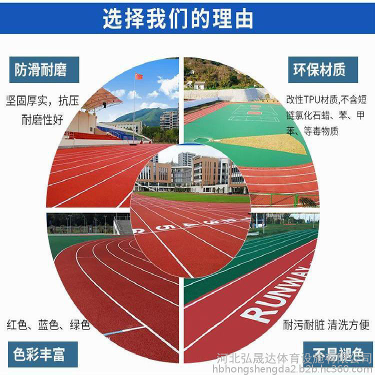 塑膠跑道又稱全天候田徑運動跑道,它由聚氨酯預聚體、混合聚醚、廢輪胎橡膠、EPDM橡膠?;騊U顆粒、顏料、助劑、填料組成。塑膠跑道具有平整度好、抗壓強度高、硬度彈性適當、物理性能穩(wěn)定的特性,有利于運動員速度和技術(shù)的發(fā)揮,有效地提高運動成績,降低摔傷率。塑膠跑道是由聚氨酯橡膠等材料組成的,具有一定的彈性和色彩,具有一定的抗紫外線能力和耐老化