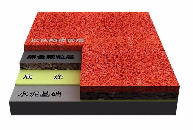 面層主要應(yīng)用為各級各類學(xué)校及體育場、田徑場跑道、半圓區(qū)、輔助區(qū); 全民健身路徑、室內(nèi)體育館訓(xùn)練跑道游樂場道路鋪面。 透氣型塑膠跑道面層結(jié)構(gòu),表面為噴涂顆粒狀,具有高度透水、透氣及耐磨性。底層由(聚氨脂)接著劑與跑道專用膠粒充分?jǐn)嚢韬?,?jīng)專用鋪裝機(jī)械現(xiàn)場鋪設(shè)而成。具有高平整度及透水、透氣功能。