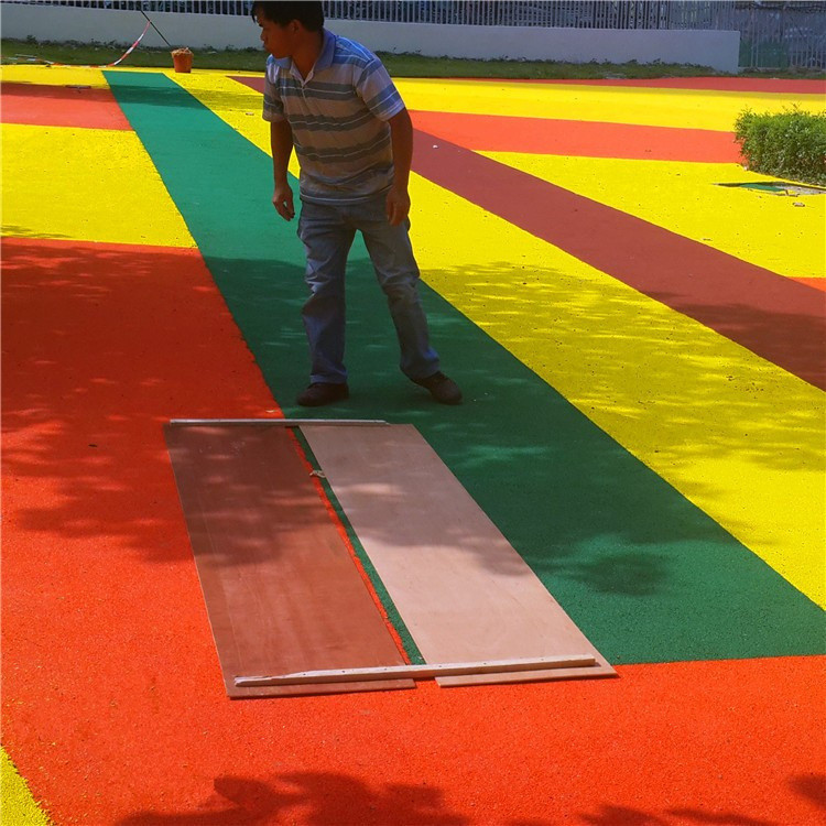 c)刮面膠,在面膠未固化前,撒上紅顆粒,待其完全固化后,將多余面膠粒清掃干凈。