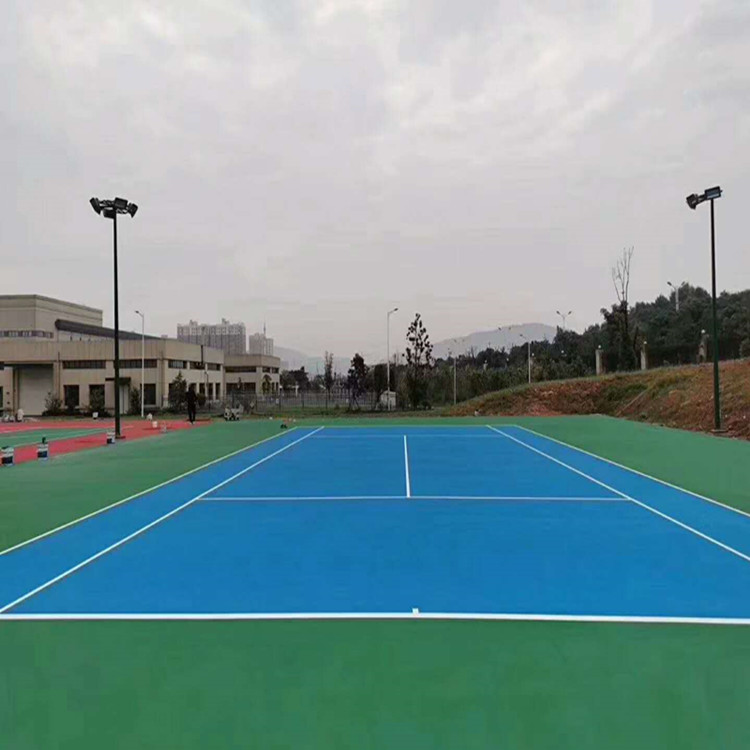 5、紋理層:丙烯酸調(diào)速料摻入丙烯酸色料后加水全場涂刮二層丙烯酸調(diào)速料是一種含石英砂丙烯酸乳液的混合物。使紋理表面濃厚并且耐久,提高調(diào)節(jié)球速及耐磨的功能。每層干透及養(yǎng)護需24小時。