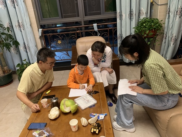 為保障本次送教活動取得實效,“送教上門”工作負責人尹寧波主任、校專職心理教師黃欣、相關(guān)班主任在活動開始就明確了送教上門的具體要求,制定了送教上門的工作計劃,并針對每位學生的特點落實送教工作。黃欣老師與家長進行了親切地交談,詳細詢問孩子的身心狀況和家長今后的打算,引導家長重視孩子身心健康發(fā)展。送教班主任和任課老師耐心地同孩子交流,針對不同孩子自身的能力發(fā)展特點,給予孩子形式多樣的指導:語文老師指導練書法,數(shù)學老師的指導練習畫圓,英語老師指導糾正口語和發(fā)音。本次送教活動還給孩子們贈送了學習用品、生活用品等助學物資。孩子們收到禮物后,臉上洋溢著幸福的笑容。