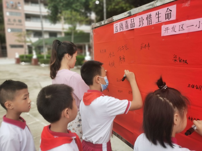 開發(fā)區(qū)第一小學(xué):珍愛生命,拒絕毒品禁毒宣誓暨我為群眾辦實事