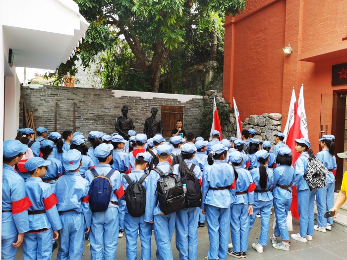 4月25日,天公作美,風(fēng)和日麗、碧空如洗。中山火炬高技術(shù)產(chǎn)業(yè)開(kāi)發(fā)區(qū)第一小學(xué)六年級(jí)(4)班在家委的精心組織下,全班51個(gè)親子家庭齊聚一堂,出發(fā)前往中山沙溪鎮(zhèn)明亭村參觀申明亭革命史跡館和揚(yáng)子江故居,開(kāi)展以“踏尋紅色足跡,共慶建黨100周年”為主題的親子研學(xué)活動(dòng)。