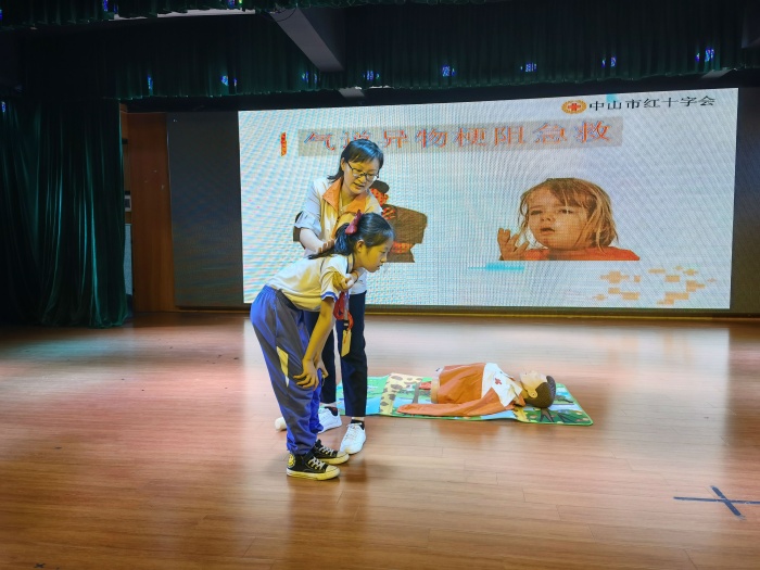 為了進一步普及急救知識,增強學生的安全意識和提高應急救護技能,4月12日下午,學校特邀中山市紅十字會鄭旭敏老師為五年級全體同學進行了應急救護知識講座。鄭老師結合日常常見突發(fā)情況,通過分析救援案例,說明施救過程中的技術要點、現(xiàn)場動作示范演示等,專心致志地為大家講授了氣道異物梗阻、溺水救護、燙燒傷、鼻出血、踩踏傷與心肺復蘇等相關知識和急救方法。