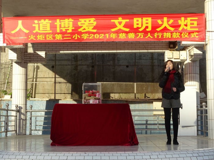 為積極響應(yīng)2021年市、區(qū)慈善萬人行活動(dòng)倡議,弘揚(yáng)人道博愛精神,倡導(dǎo)中華美德,唱響新時(shí)代主旋律,營造互幫互助互愛的社會(huì)氛圍,為建設(shè)文明火炬區(qū)加快高質(zhì)量崛起貢獻(xiàn)力量,2020年12月31日上午,開發(fā)區(qū)第二小學(xué)舉行主題為“人道博愛,文明火炬”2021年慈善萬人行義捐活動(dòng)。
