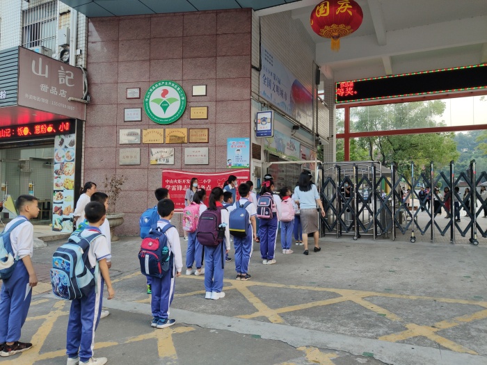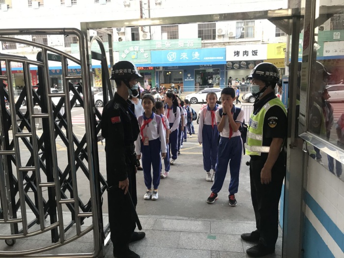 演練開始,學(xué)生每人間隔一米,有序排隊,逐個進(jìn)行入校體溫檢測。值日行政人員、教師和門衛(wèi)組成護(hù)導(dǎo)隊,提醒學(xué)生保持安全距離,并對學(xué)生的體溫進(jìn)行測量、登記。體溫異常學(xué)生在值日行政人員的帶領(lǐng)下前往觀察區(qū)和隔離區(qū)。隨即校醫(yī)對學(xué)生進(jìn)行詢問、體溫復(fù)測和初步診斷,做好記錄后,通知家長來接,由其家長按要求及時到定點醫(yī)院并按照醫(yī)療機構(gòu)指引處理。