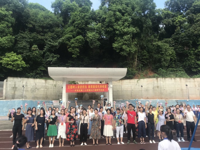 9月10日是第36個(gè)教師節(jié)。為持續(xù)實(shí)施“奮進(jìn)之筆”的進(jìn)展成效,展示廣大教師立足教育教學(xué)崗位,助力打贏新冠肺炎疫情防控阻擊戰(zhàn)、教育脫貧攻堅(jiān)戰(zhàn)的精神風(fēng)貌。當(dāng)天早上,開發(fā)區(qū)第二小學(xué)全體師生齊聚學(xué)校操場(chǎng)舉行以“立德樹人奮進(jìn)擔(dān)當(dāng) 教育脫貧托舉希望”為主題的慶祝教師節(jié)活動(dòng)。