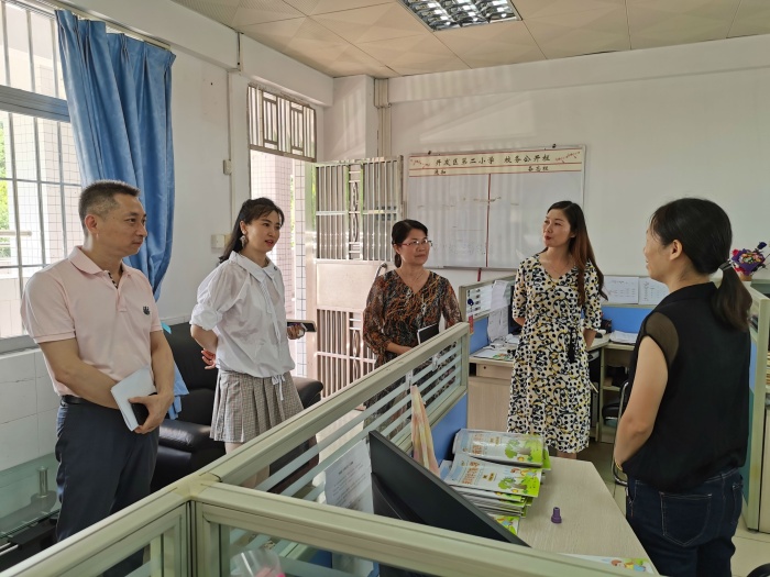 “你們辛苦了,向你們表示慰問(wèn),節(jié)日快樂(lè)!” 余書記一行隨后來(lái)到教師辦公室,與老師們親切交談,詳細(xì)了解他們的工作和生活情況,向他們致以節(jié)日的問(wèn)候,感謝他們?cè)鶎咏逃瑦?ài)崗敬業(yè),默默耕耘。他強(qiáng)調(diào),教育是國(guó)家的未來(lái)和民族的希望,作為教育人要牢記肩負(fù)的神圣職責(zé)和光榮使命,不忘立德樹(shù)人初心,不斷增強(qiáng)教書育人的本領(lǐng),為全區(qū)教育事業(yè)的發(fā)展進(jìn)步作出新貢獻(xiàn)。老師們對(duì)區(qū)黨委、政府的關(guān)心表示感謝,紛紛表示會(huì)繼續(xù)發(fā)揚(yáng)愛(ài)崗敬業(yè)、無(wú)私奉獻(xiàn)、甘為人梯的精神,牢固樹(shù)立教育情懷,堅(jiān)守初心、保持定力,為開(kāi)發(fā)區(qū)教育事業(yè)長(zhǎng)足發(fā)展貢獻(xiàn)自己力量。