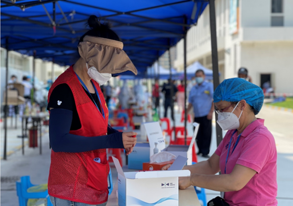 健康小鎮(zhèn)的2名志愿者積極輔助現(xiàn)場的醫(yī)院人員進行核酸測試工作,哪里需要他們就去哪里。核酸檢測瓶的標簽粘貼、葵花碼的驗證、核酸檢測隊伍的指引,直至核酸檢測工作圓滿結束。