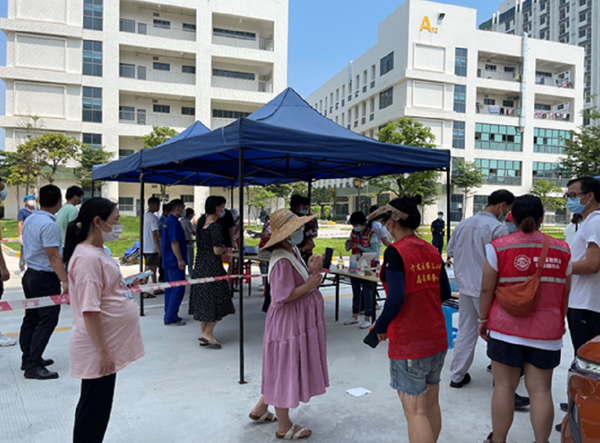 2021年7月25日,三小組織第一批10名黨員教師志愿者參加了防疫志愿活動。本次活動分為兩部分,8名志愿者為隔離人員即將入住的宿舍進行清潔和物資整理;2名志愿者到管控區(qū)健康小鎮(zhèn)的核酸測試現(xiàn)場進行引導服務。