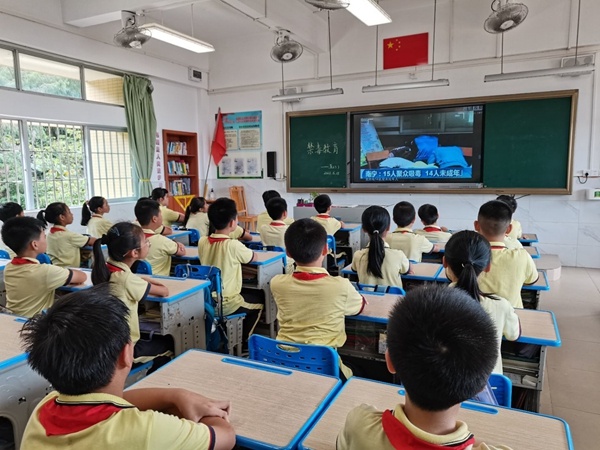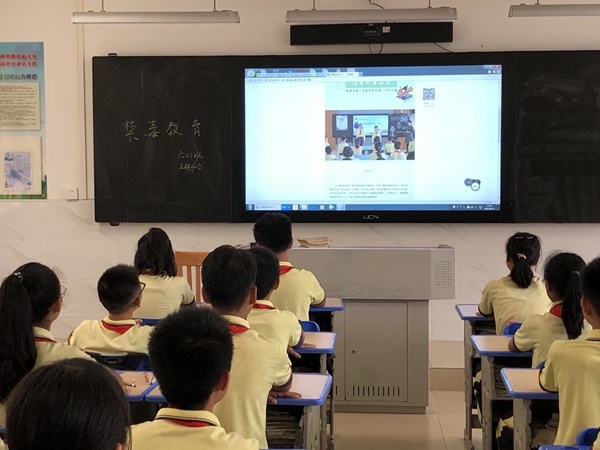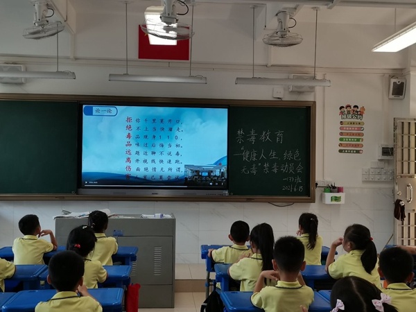首先,各中隊輔導(dǎo)員老師組織學(xué)生觀看了由該校王麗教師執(zhí)教的視頻《滾蛋吧,毒品君》。該視頻先從兩名學(xué)生深情朗誦《爸爸您回來吧》,讓孩子們深刻體會到吸毒對家庭的危害。接著從毒品的種類及其嚴重危害,國家為什么要組織實施青少年毒品預(yù)防教育,如何有效深入推進青少年毒品預(yù)防等方面,用一個個鮮活的事例和相關(guān)的視頻講解為廣大師生普及了禁毒知識,并告誡廣大師生們要遠離毒品、珍愛生命,增強抵御毒品的能力。