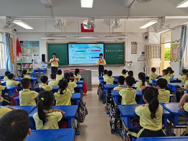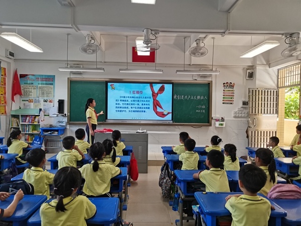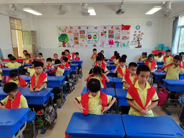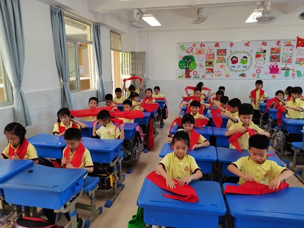為了進一步培養(yǎng)學生熱愛黨、熱愛祖國、熱愛人民的高尚品質,激勵他們爭當新時代好隊員,2021年5月18日下午,在迎來中國共產黨建黨100周年之際,火炬開發(fā)區(qū)第三小學大隊部利用少先隊活動課,由大隊委員為一年級的同學開啟了生動而嚴肅的教育活動,孩子們備受鼓舞愛國愛黨之情更加飽滿,對加入中國少年先鋒隊充滿期待!
