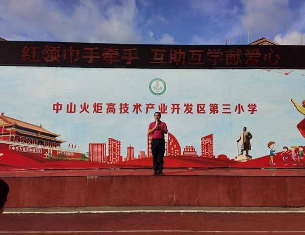 活動中,三小吳書麗副校長介紹了本次“送教活動”的目的和意義。接著,由三小教師代表王麗老師發(fā)出獻愛心倡議。她倡議:一二年級的同學們畫一幅畫,表達對饒平汛洲小學的同學們的愛心;三四年級的同學用心書寫一段話,把他們的祝福送給饒平汛洲小學的同學;五六年級的同學給饒平汛洲小學的同學寫一封信,讓那些遠方的孩子感受到三小的同學們與他們心連心。最后,由三小劉光旗校長講話,他希望全體師生一起伸出雙手,獻出愛心,給饒平汛洲小學的師生一個溫暖的問候,給他們一份心靈的寄托,給他們一個未來的希望。