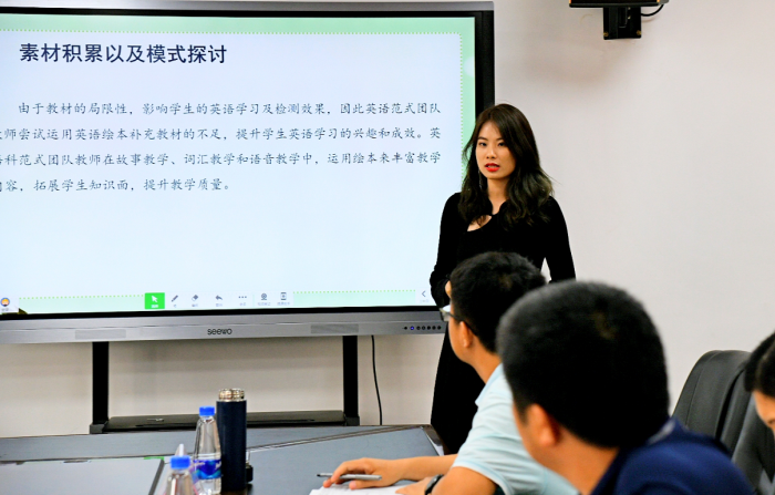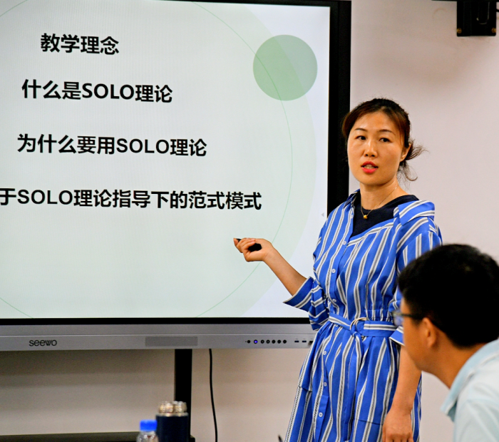 此次交流展示活動由開發(fā)區(qū)五小崔洋副校長主持,首先崔校長向跟崗校長們介紹了學(xué)校范式教師的結(jié)構(gòu),簡要說明了創(chuàng)立“范式課堂”、設(shè)立“范式教師”的初衷。接下來是“范式教師”代表作匯報。李美婷老師向大家分享了她所帶領(lǐng)團(tuán)隊(duì)的范式課堂模式是“與書為伴,樂學(xué)善思”的童趣課堂,此課堂教學(xué)模式立足于讓低年級的孩子培養(yǎng)愛閱讀、愛學(xué)習(xí)、愛思考的好習(xí)慣,落實(shí)低年級的字詞句教學(xué),把語文學(xué)習(xí)的基礎(chǔ)打牢固。鄧新芳老師針對高年段研究的“問思”課堂模式,以問題為支架,知識與能力并行,通過課堂提問學(xué)生“是什么”“為什么”“怎么做”,讓學(xué)生更加深入地學(xué)習(xí)課文,發(fā)展思維能力。數(shù)學(xué)科由張萍萍老師向大家分享了“基于solo理論指導(dǎo)下的數(shù)學(xué)課堂模式”,課前通過前測診斷出學(xué)生的思維層次,用“加一”策略,定出學(xué)習(xí)目標(biāo)再通過課堂教學(xué)分層指導(dǎo),提升學(xué)生的思維層次。英語科沈曼琳老師立足于英語繪本故事,在故事教學(xué)、詞匯教學(xué)和語音教學(xué)中,運(yùn)用繪本來豐富教學(xué)內(nèi)容,拓寬學(xué)生知識面,提升教學(xué)質(zhì)量。