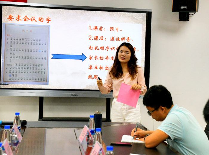 聽完范式教師代表們的匯報交流后,跟崗學(xué)員鄒穎華校長總結(jié)發(fā)言,他表示:開發(fā)區(qū)五小創(chuàng)立“范式課堂“、設(shè)立“范式教師”的措施是非常有利于促進(jìn)學(xué)校教學(xué)質(zhì)量提升的,值得推廣下去。這次匯報交流活動讓大家都學(xué)到了更多先進(jìn)的教學(xué)理念,讓一批有能力有想法的“先行”教師帶頭示范,引領(lǐng)同伴共同成長。