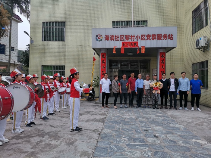 3月13日上午,火炬區(qū)第五小學(xué)的少先隊(duì)鼓號(hào)隊(duì)?wèi)?yīng)社區(qū)邀請(qǐng)參加入伍新兵歡送活動(dòng)。在鄭倩喜等老師的帶領(lǐng)下,參加了黎村小區(qū)的新兵入伍歡送儀式。